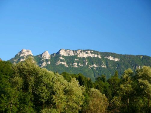 La Dent du Chat est le nom donné à la montagne emblématique de la région, qui culmine à 1390 mètres de haut et aurait la forme de… la dent d’un chat, je crois que vous aviez compris ! De son sommet, il parait d’ailleurs qu’on a une vue panoramique imprenable sur le lac du Bourget et le Mont-Blanc.