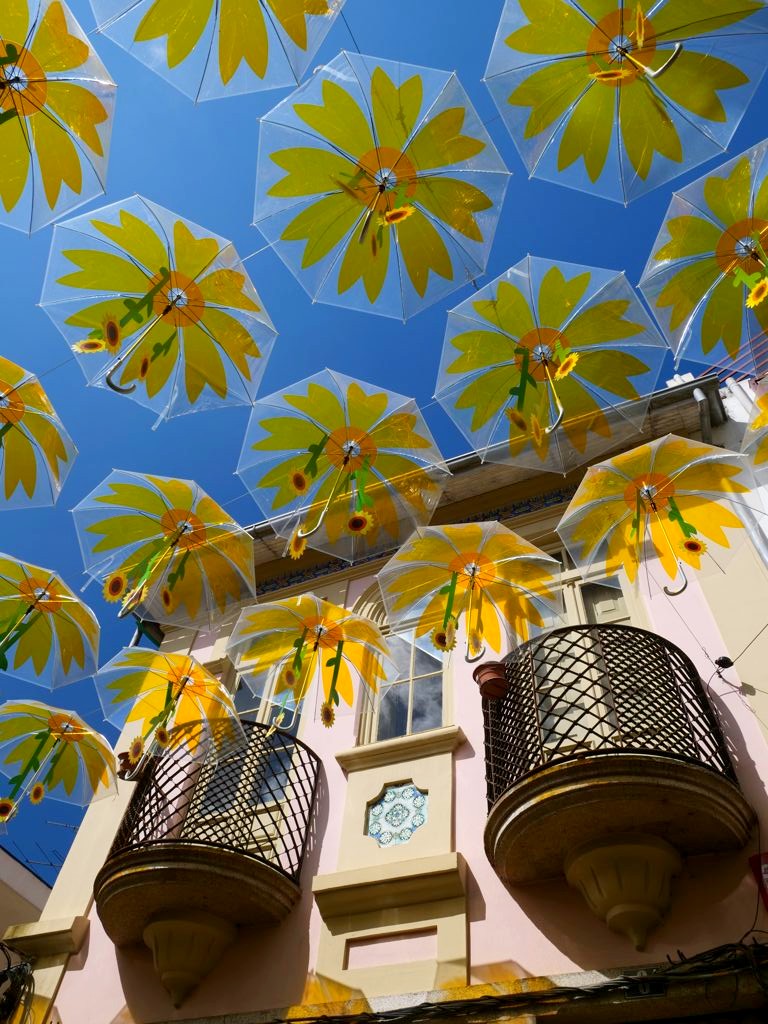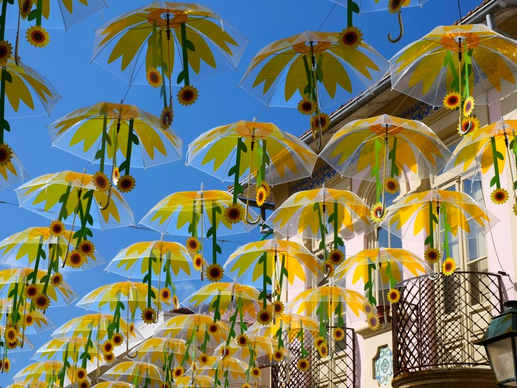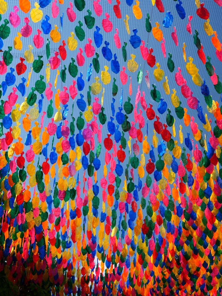 On retrouve bien sûr des parapluies, l’objet qui a lancé cette tendance un peu partout dans le monde, mais le concept est poussé bien plus loin ici, puisqu’on a l’impression de se balader dans une galerie d’art à ciel ouvert !