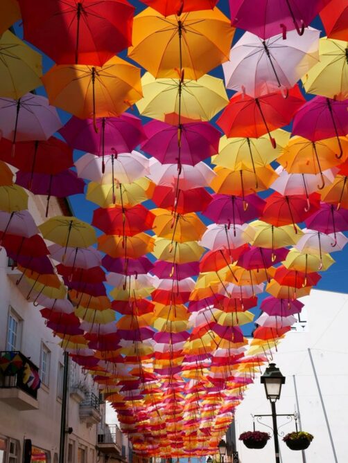 Proche d’Aveiro, la Venise Art Nouveau du Portugal, la petite ville d’Agueda a su s’imposer ces dernières années comme une destination immanquable au Portugal, qui attire chaque année de nombreux touristes. Connue pour son street art et surtout pour son original Umbrella Sky Project, Agueda est probablement la ville la plus « instagrammable » du Portugal !
