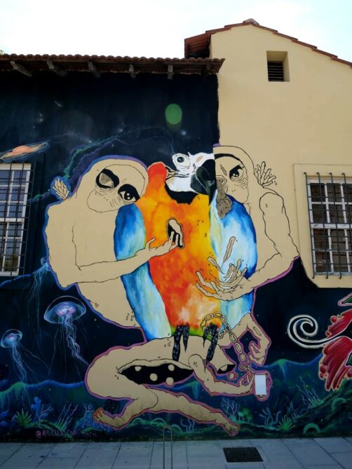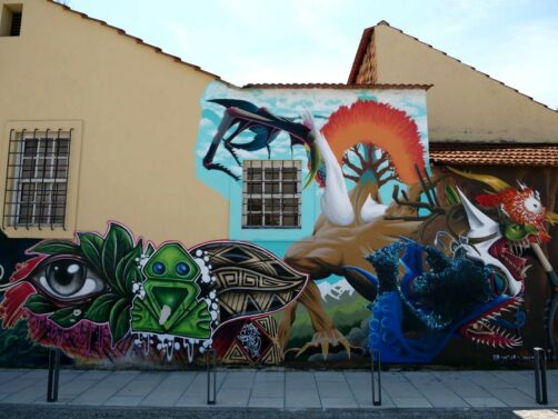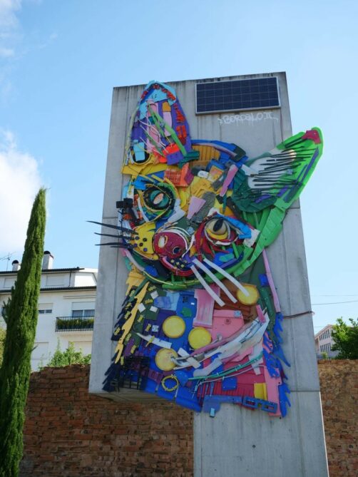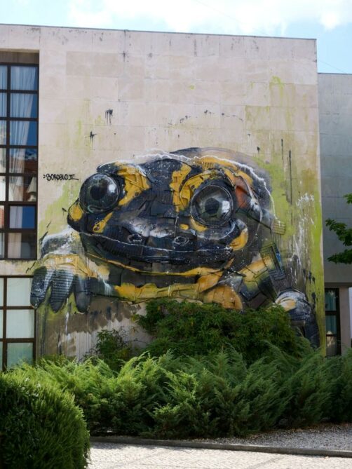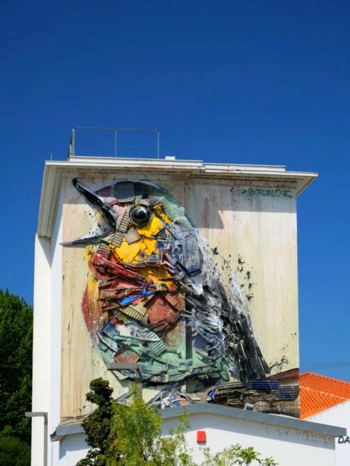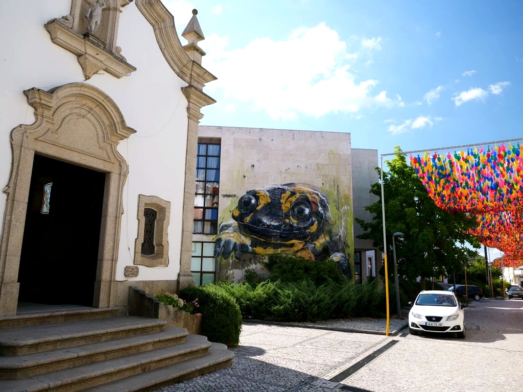 En plus de la décoration saisonnière des rues, on retrouve toute l’année à Agueda des oeuvres de street art de compétition ! On peut notamment y admirer 3 œuvres d’un de mes street artists préférés, le portugais Bordalo II : un chat qui s’illumine de nuit près du centre d’art d’Agueda (à côté de la gare), une grenouille près de l’hôtel de ville et un oiseau au bord de l’eau, Rua 5 de Outubro.