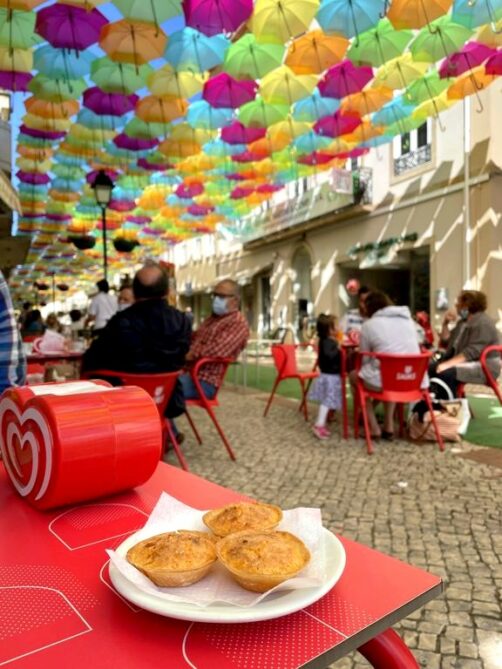 Si vous connaissez un peu le Portugal, vous savez qu’à peu près chaque village a comme spécialité au moins une pâtisserie à base de jaune d’œuf ! Agueda en a plusieurs à découvrir, comme le pastel de Agueda. Une adresse populaire pour en profiter à l’ombre des parapluies du Umbrella Sky Projects est la Padaria e Pastelaria Trigal.