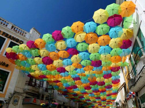 Durant la saison estivale (du 1er juillet au 30 septembre), les rues du centre d’Agueda se voient agrémentées de différentes installations artistiques colorées, qui changent d’année en année.
