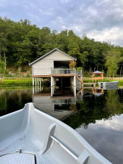 Depuis la terrasse, quelques escaliers permettent d’accéder à la barque de l’hébergement, amarrée sur le petit ponton de la cabane. En plus de la partie couverte, chaque lodge possède aussi un espace extérieur ouvert avec un espace barbecue.