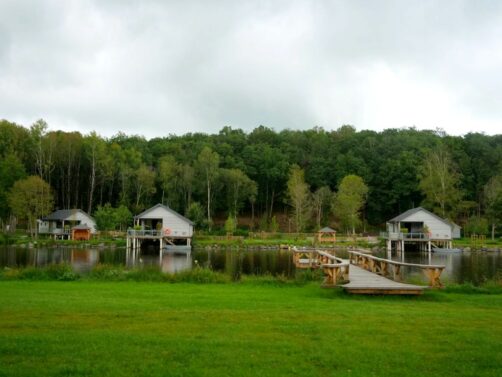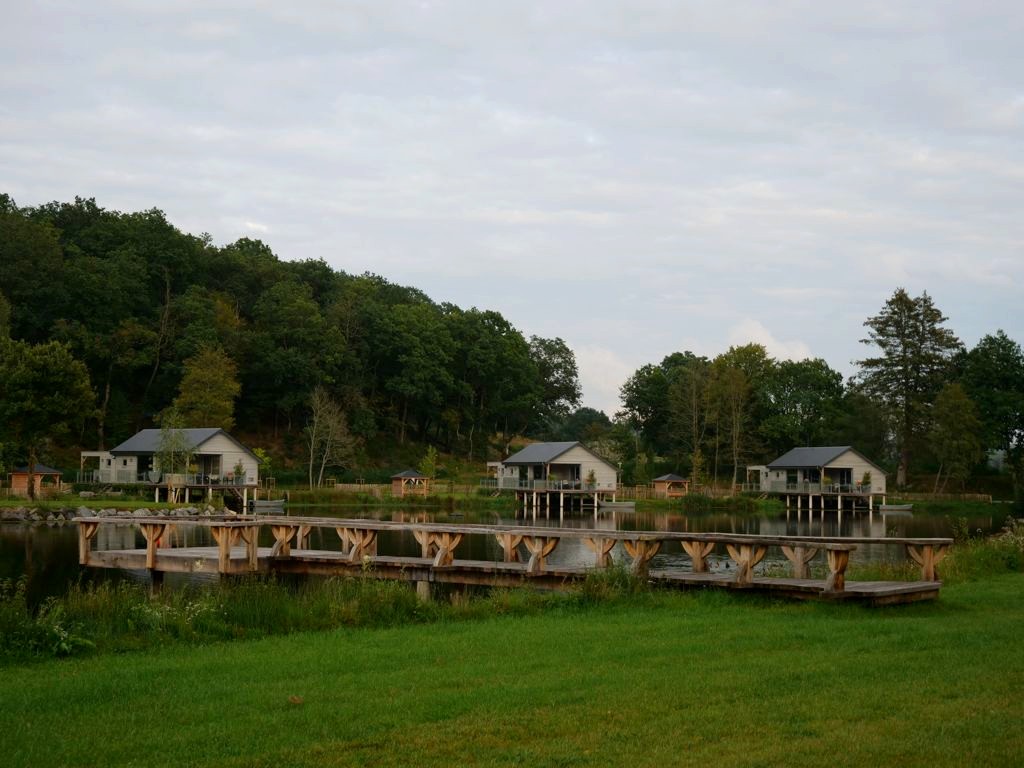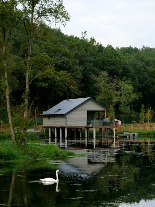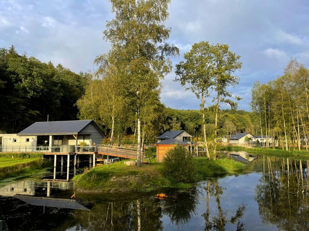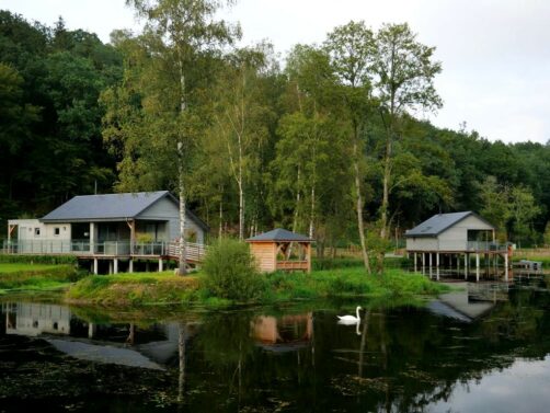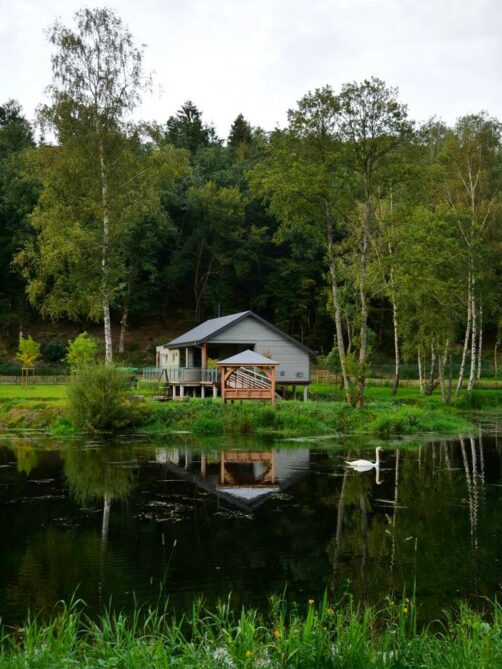 Les cabanes en bois sur pilotis entourent un grand étang alimenté par la Vierre (un affluent de la Semois). C’est donc à cette rivière que les lodges doivent leur nom ! Bien espacées, celles-ci ont été installées tout autour du lac, qui est entouré par 18 hectares de zones boisées et prairies protégées en zone Natura 2000.