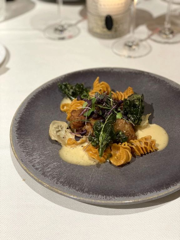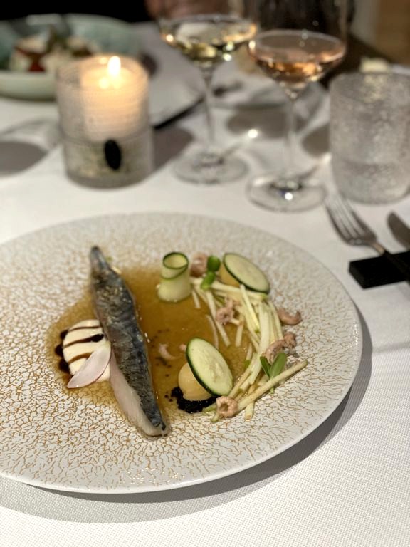 Le cadre chic, avec son escalier monumental et ses tables nappées, reflète la qualité du menu. A la carte, en fonction de votre faim, le menu se décline de 3 à 5 services, de 38€ à 60€ : un excellent rapport qualité-prix pour une cuisine aussi locale et créative. Le repas fut un sans faute, avec des préparations originales, recherchées et gourmandes.