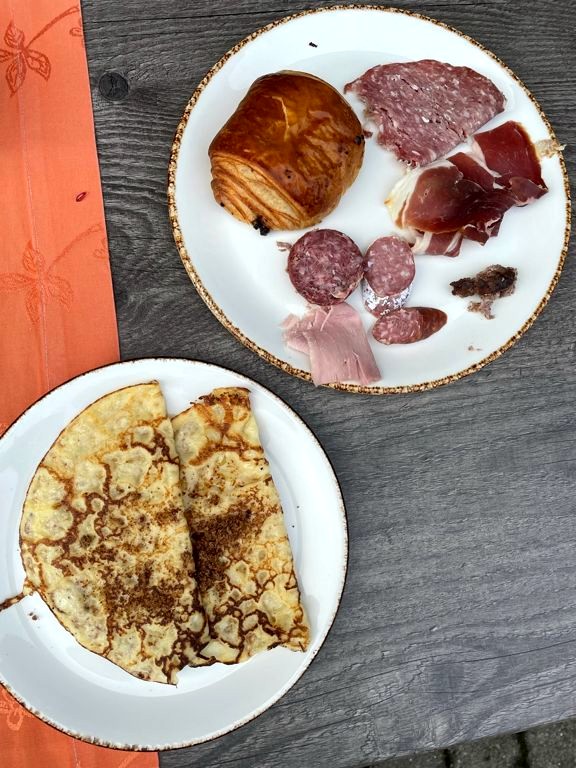 C’est aussi à L’Epi d’Or que se prennent les petits-déjeuners, quel que soit le bâtiment où vous logez. J’ai rarement vu un petit-déjeuner aussi copieux. Goûter à tous les fromages et les charcuteries locales est déjà une prouesse, mais essayez de garder de la place pour les délicieuses viennoiseries et crêpes préparées minute (ou comment se promettre de ne manger qu’un peu après le repas copieux de la veille, et ressortir avec un ventre à nouveau bien rempli !).