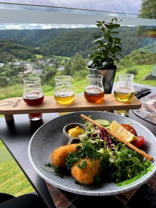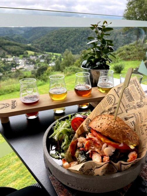Mon coup de coeur reste malgré tout Le Point de Vue, une des dernières adresses ouvertes à Rochehaut en 2019, qui propose une cuisine « du monde », avec une vue imprenable sur la Semois en contrebas. La carte moderne et originale mêle les influences belges, américaines et asiatiques. Si comme moi vous aimez le homard, ne manquez pas leurs croquettes au homard ou encore le très original burger au homard, un délice à prix raisonnable !