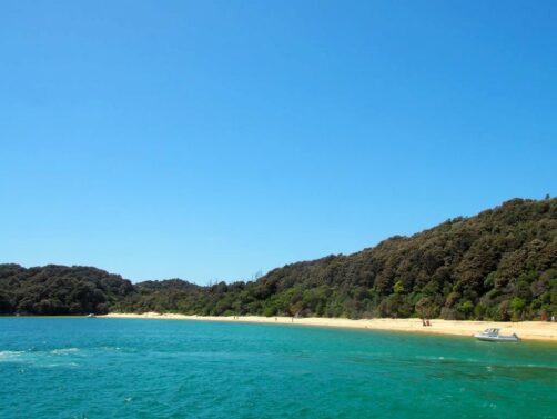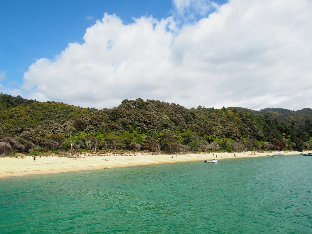 Le tour que nous avons réservé au départ de Totaranui dans le nord est celui-ci, et le même itinéraire peut être effectué depuis le sud au départ de Kaiteriteri (Option A ici). À nouveau, il risque d’y avoir plus de monde sur le bateau de ce côté-là mais sur cette portion de la randonnée, vous devriez être relativement tranquille quel que soit le côté duquel vous arrivez.