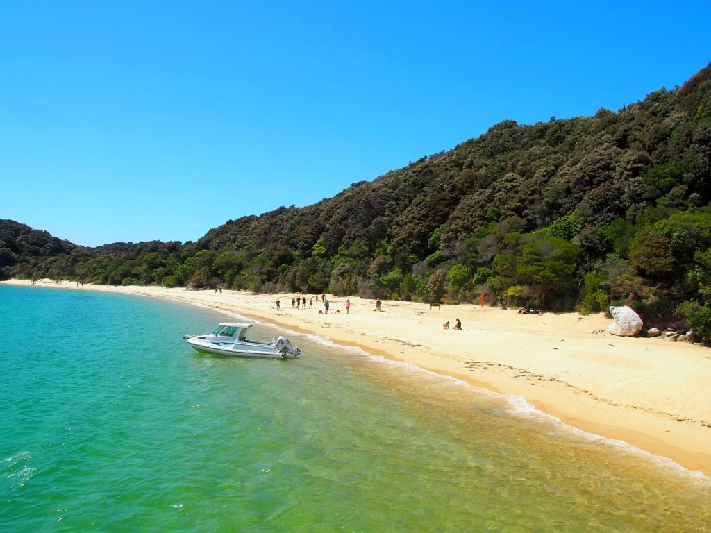 - Si possible, ne partez pas du sud du parc (Kaiteriteri et environs) comme le font la grande majorité des touristes (qui débarquerons donc au même endroit que vous le matin et vous suivrons sur le chemin toute la journée…) mais depuis le nord du parc (Totaranui). Le matin, les bateaux partant de ce côté sont moins nombreux et moins remplis, et vous serez beaucoup plus tranquilles tout au long de votre balade. Je vous explique l’itinéraire que nous avons choisi depuis le nord du parc un peu plus bas dans l’article.
