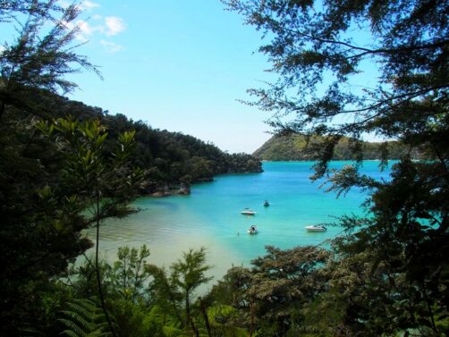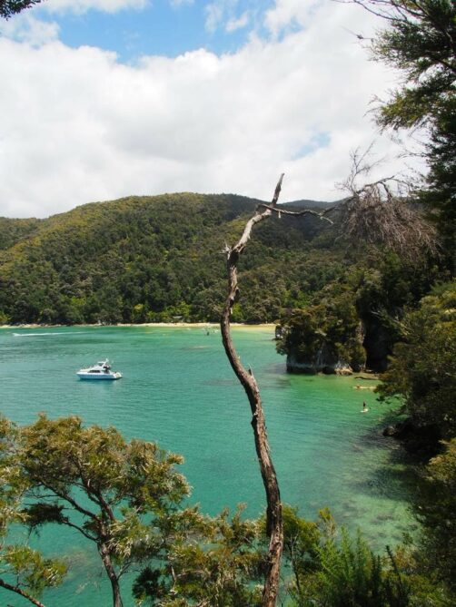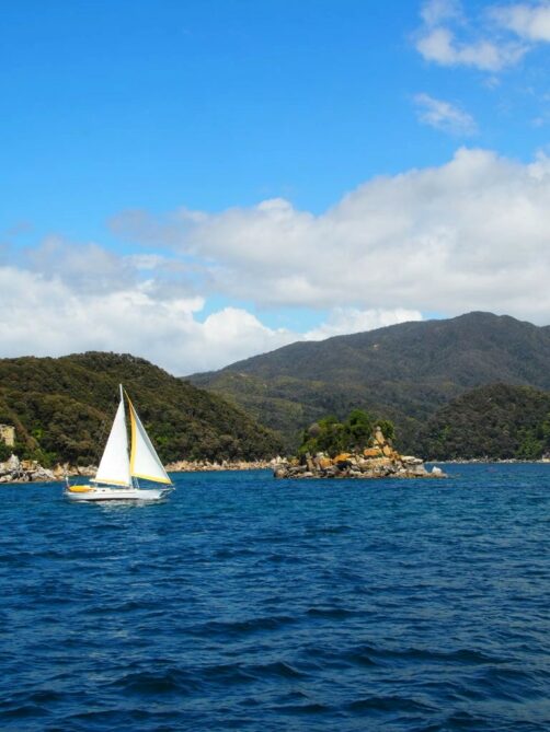 - en catamaran ou voilier : d’autres compagnies comme Abel Tasman Sailing Adventures proposent des croisières d’un jour ou croisière + rando à un prix légèrement supérieur (à l’heure où j’écris ces lignes) pour ceux qui veulent prendre le temps et avoir une expérience un peu différente.