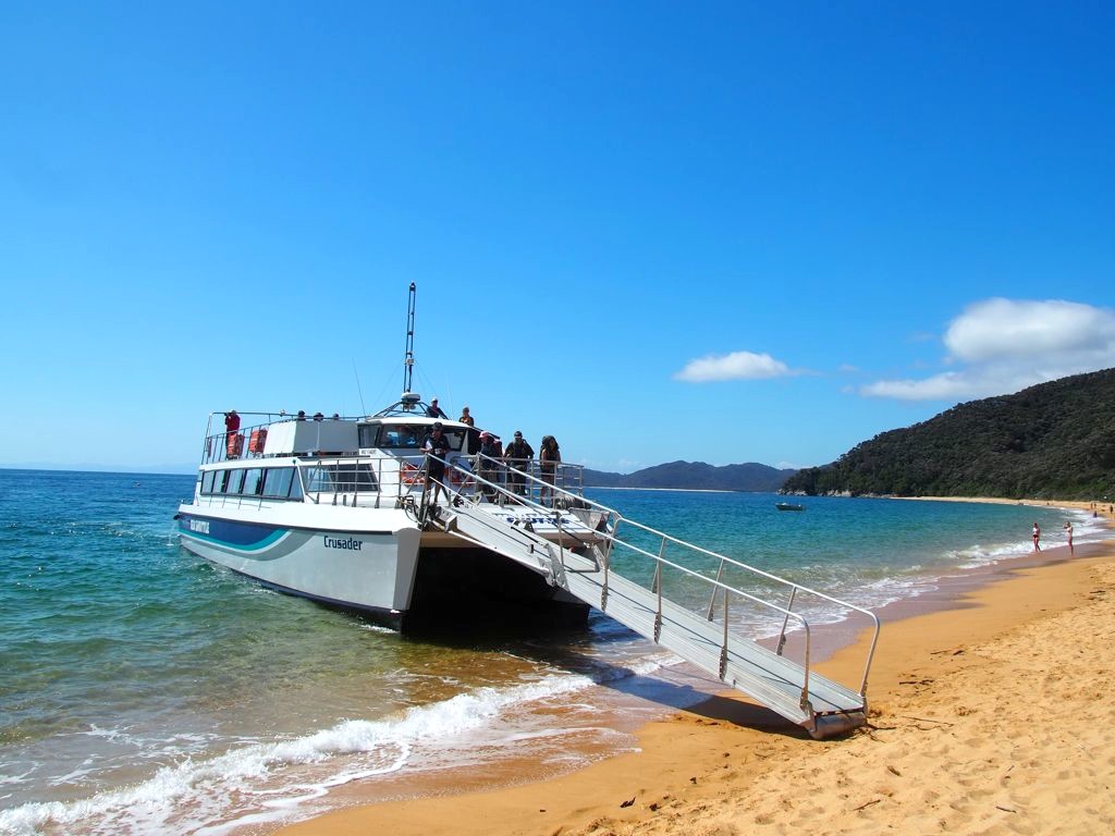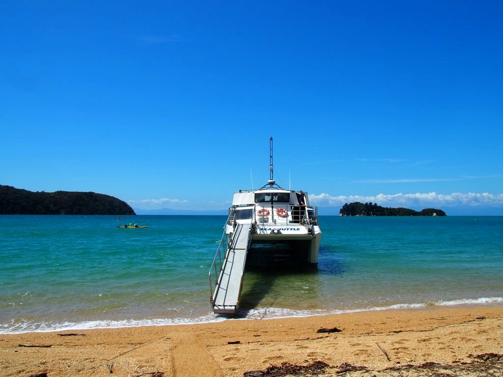 - bateaux-taxis (water taxis) : ce sont des bateaux plus petits qui ne font que des services de navettes entre différents points du parc. Il faut souvent se mouiller pour rentrer/sortir de ces bateaux (à l’inverse des bateaux navettes qui ont des passerelles) et comme les bateaux sont plus petits on y est moins bien installés. Ce n’est donc pas une option que je conseille vu que les prix sont similaires à ceux des Abel Tasman Sea Shuttles tout en étant plus difficile à organiser au niveau des réservations. Par contre, si vous effectuez l’ensemble de la randonnée, les bateaux taxis peuvent vous servir pour organiser le transfert de vos bagages et ainsi randonner léger.