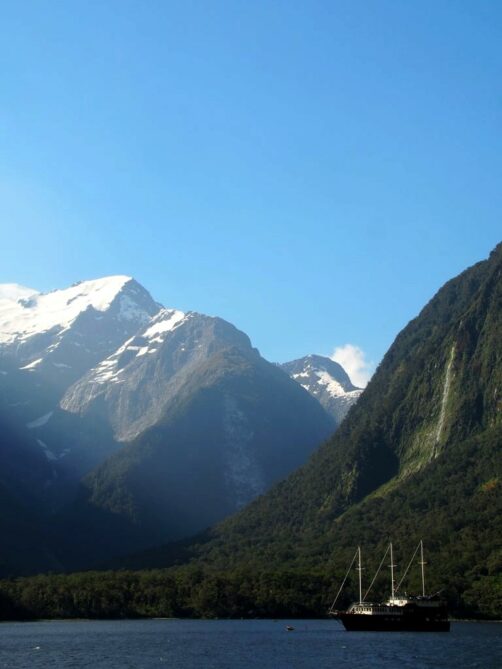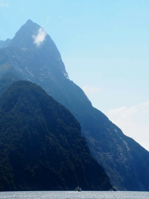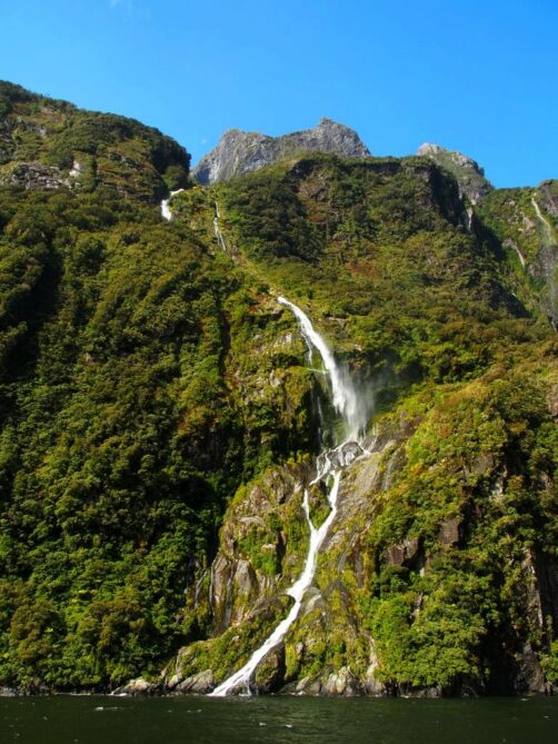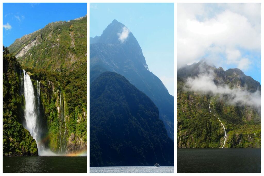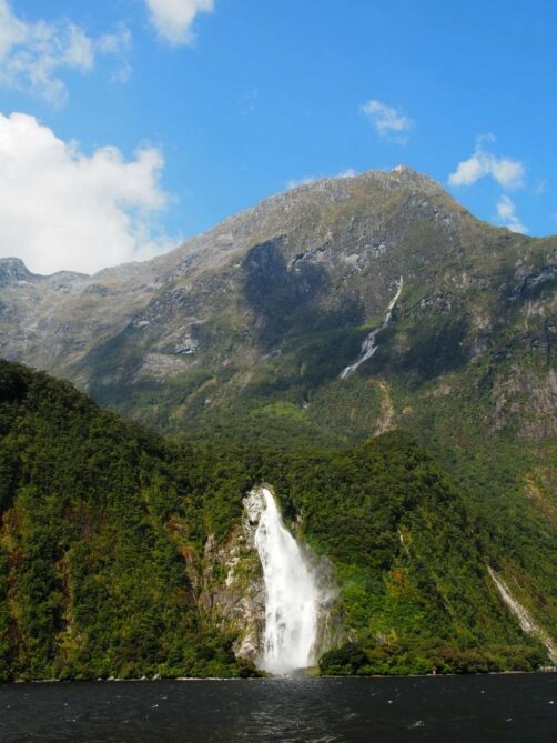 Dès le départ, le Mitre Peak, le plus haut sommet du fjord, impressionne. Durant la croisière, le bateau s’approche plusieurs fois très près des chutes d’eau qui se déversent dans le fjord. Le spectacle est au rendez-vous ! Mais si vous ne voulez pas être mouillés, ne vous mettez pas trop à l’avant du bateau.