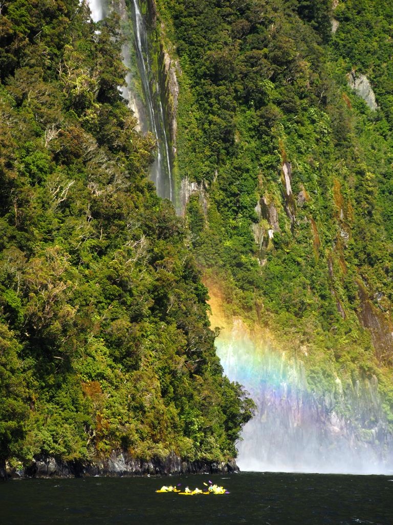 Étant donné qu’il est pour ainsi dire impossible de se présenter au Milford Sound sans réservation, et que vous devrez réserver votre croisière avant de connaître la météo du jour (et encore, les bulletins météo se trompent souvent dans cette région…), il y a un minimum de chance à avoir pour profiter du Milford Sound dans de bonnes conditions. Vous voilà prévenus, même si je suis sûre que le Milford Sound sous la pluie ne doit pas manquer de charme non plus.