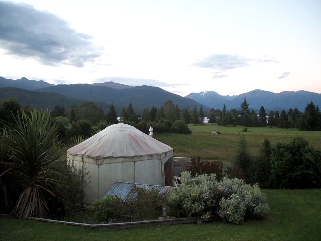 À Te Anau, nous avons logé pour la première fois dans une yourte, qui malheureusement n’existe plus. Notre timing pour cette expérience n’était pas nickel car on a eu droit à deux nuits pendant lesquelles il n’a pas arrêté de pleuvoir, avec un gros orage le premier jour, pas top niveau confort, avec juste un feu pour se chauffer.