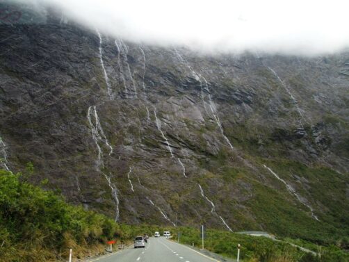 Notre hébergement nous avait remis une petite carte de la route avec tous les arrêts possibles. Nous avons eu le temps de faire les principaux arrêts conseillés, sauf le Lake Gunn Nature Walk (nous aurions eu largement le temps de le faire si nous étions partis à l’heure prévue et qu’il ne pleuvait pas le matin). Voici nos différents arrêts dans l’ordre, de Te Anau au Milford Sound.