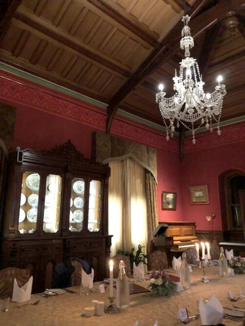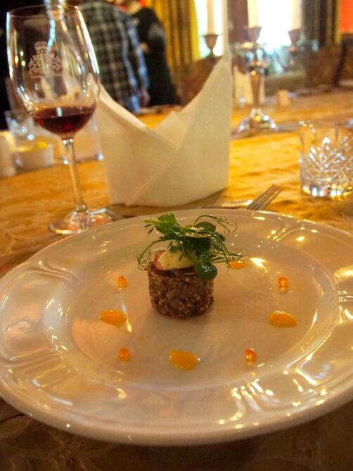 L’autre grand avantage de loger au château, c’est qu’on peut manger le soir dans une salle à manger du château. L’expérience est très exclusive puisqu’elle n’est ouverte qu’aux clients qui séjournent au château.