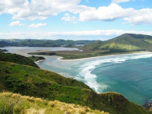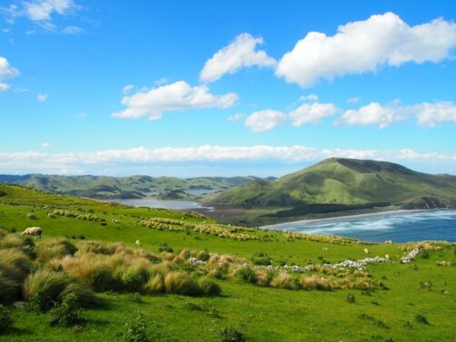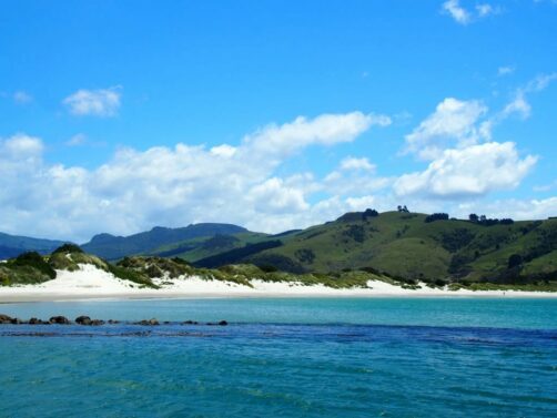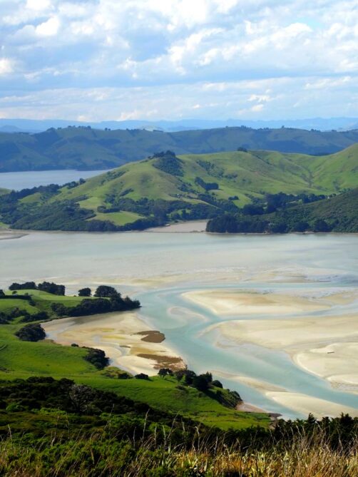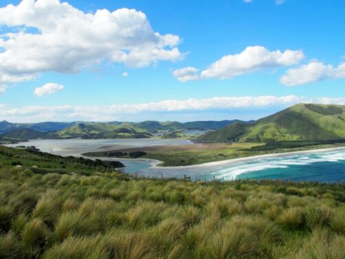 Les paysages sont tout aussi splendides, avec la plage d’Aramoana et ses bancs de sable d’un côté, et le phare historique de Taiaroa Head, le premier phare construit sur l’île du Nord, face à l’Océan Pacifique.