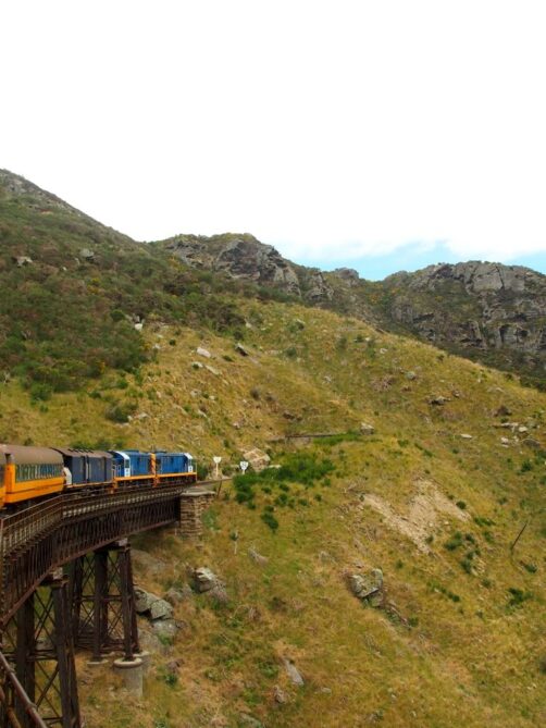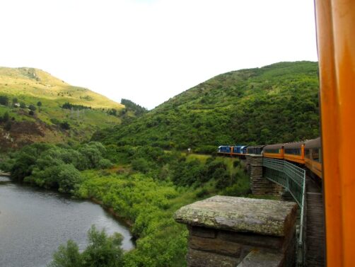 Si comme moi vous aimez les vieux trains, je vous recommande d’emprunter le Taieri Gorge Railway au départ de la gare de Dunedin. Ce vieux train du début du 20ème siècle permet de découvrir la Taeri Gorge et ses paysages splendides, avec des excursions aller-retour au départ de Dunedin d’environ une demi-journée.