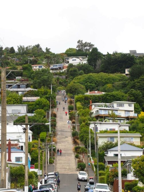 En périphérie de la ville, on trouve aussi ce qui est apparemment la rue la plus pentue au monde d’après le Guinness Book des Records : Baldwin Street. Monsieur l’a montée dans son entièreté, mais quelques mètres m’ont suffi ! On comprend facilement pourquoi cette rue est interdite aux voitures extérieures car il faut de l’entrainement ! C’est assez impressionnant.