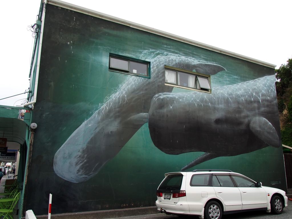 Pour se remettre de nos émotions, nous avons continué la journée avec un petit tour dans le village de Kaikoura (où on trouve pas mal de street art lié à la mer, sympa !) suivi d’un festin de poissons et fruits de mer au Kaikoura Seafood BBQ, le spot le plus populaire de Kaikoura !