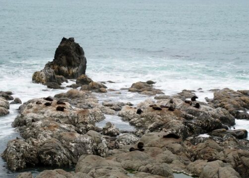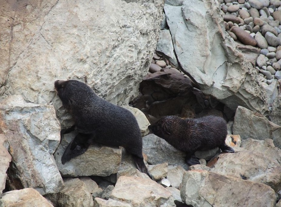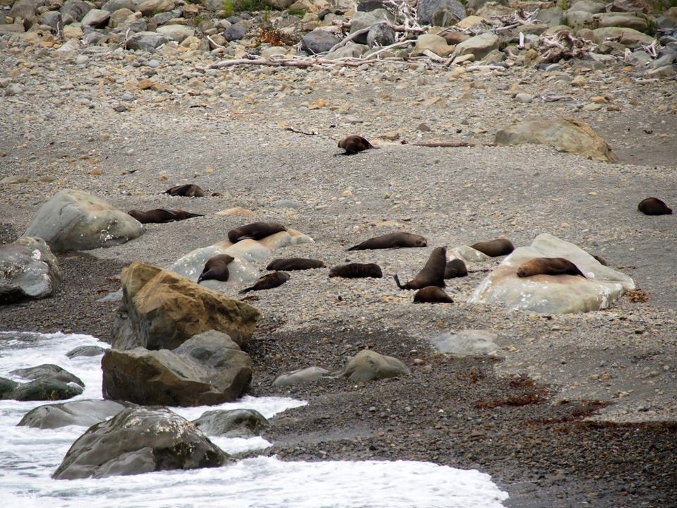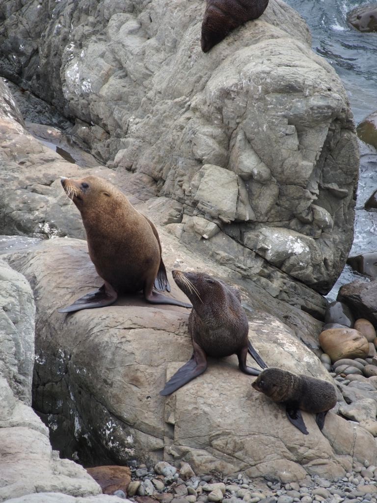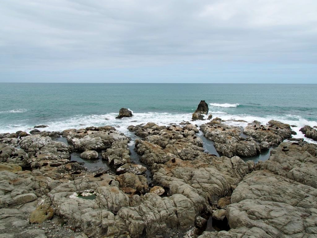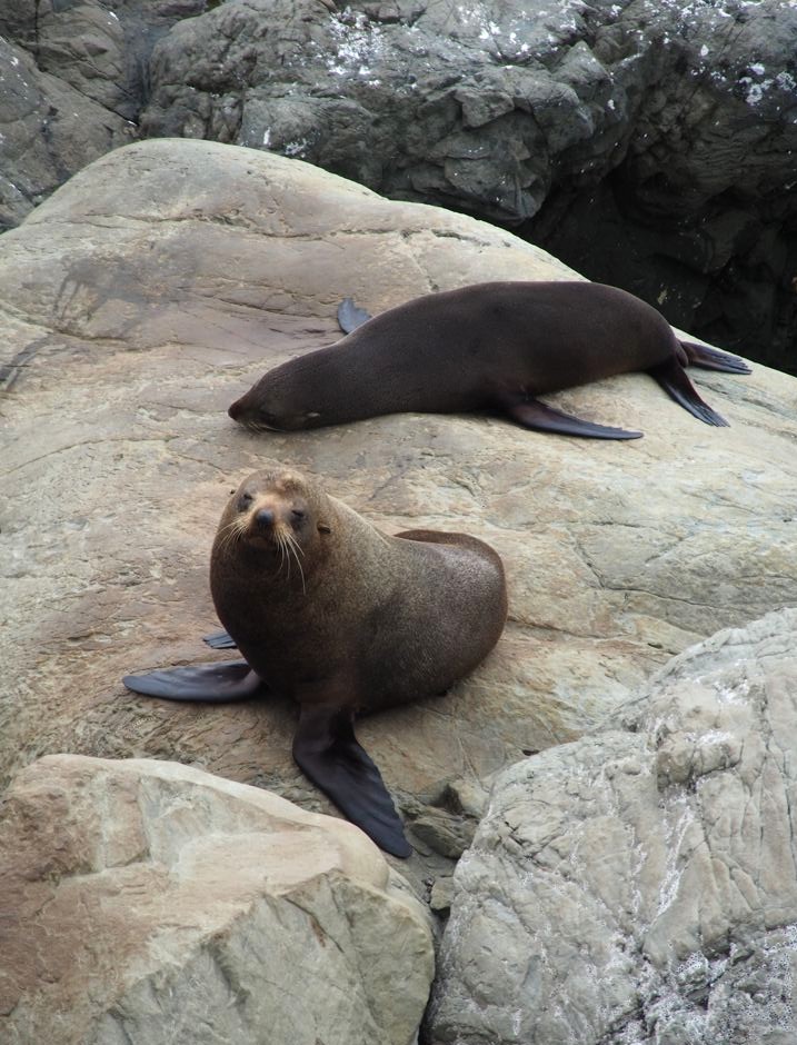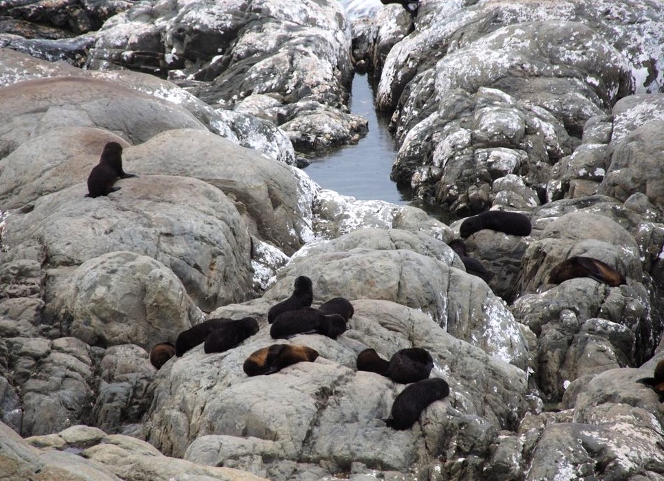 Nous n’avions pas encore fini de pousser des « oh! » d’exclamation ce jour-là : entre Kaikoura et Blenheim, juste le long de la route côtière qui longe l’Océan Pacifique, on peut observer facilement une grande colonie d’otaries à fourrure, la Ohau Point Seal Colony. Nous sommes restés très longtemps à les observer. Il y avait plein de bébés, c’était génial !