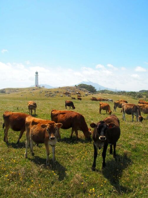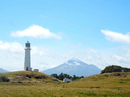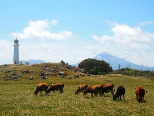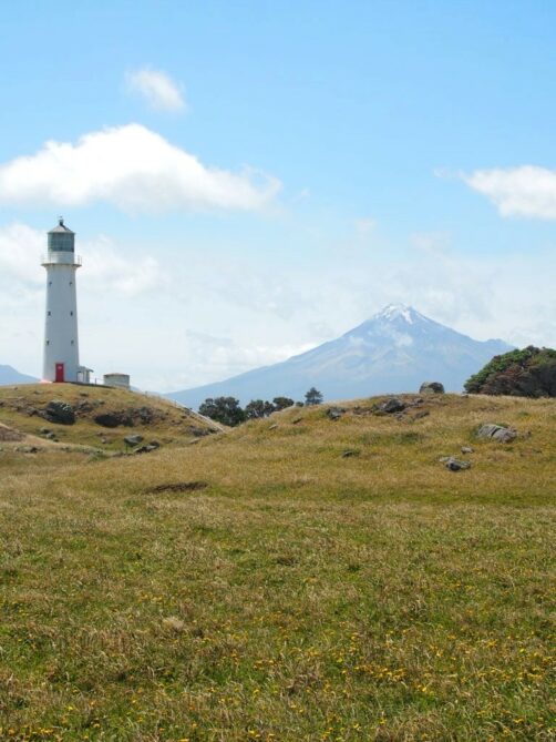Un des endroits les plus photogéniques de la côte est le phare du Cap Egmont. Imaginez : d’un côté la mer, de l’autre le phare et le volcan en arrière-plan. Une vue bucolique à couper le souffle !