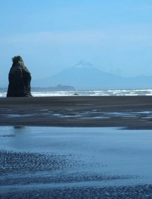 La région de Taranaki ne se limite pas au parc national, et la côte, sublime elle aussi, mérite d’être découverte. Le Mont Taranaki ne se laisse jamais oublier car on l’aperçoit toujours au loin.