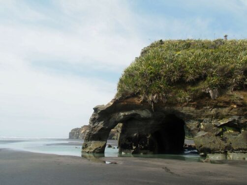 Notre dernière visite dans la région de Taranaki fut la plage de Tongaporutu, une visite qu’il faut bien programmer car celle-ci n’est accessible qu’à marée basse !