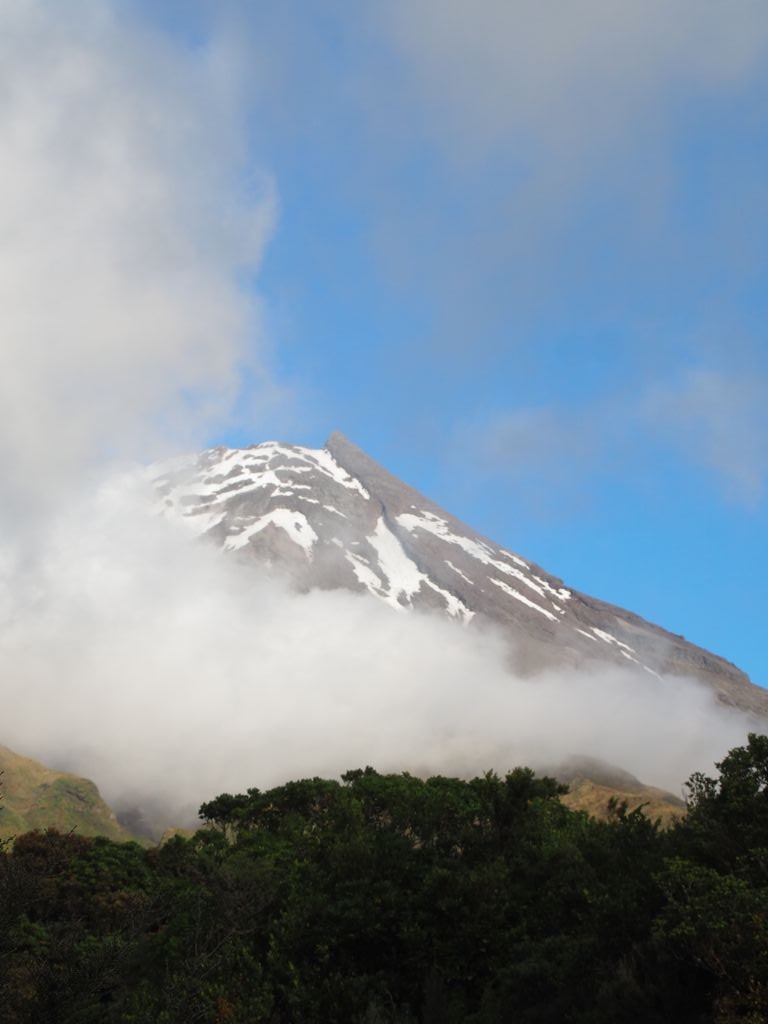 Cerise sur le gateau : ce matin-là, le Mont Taranaki était bien dégagé, un beau cadeau pour notre dernière journée en Nouvelle-Zélande.