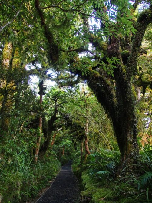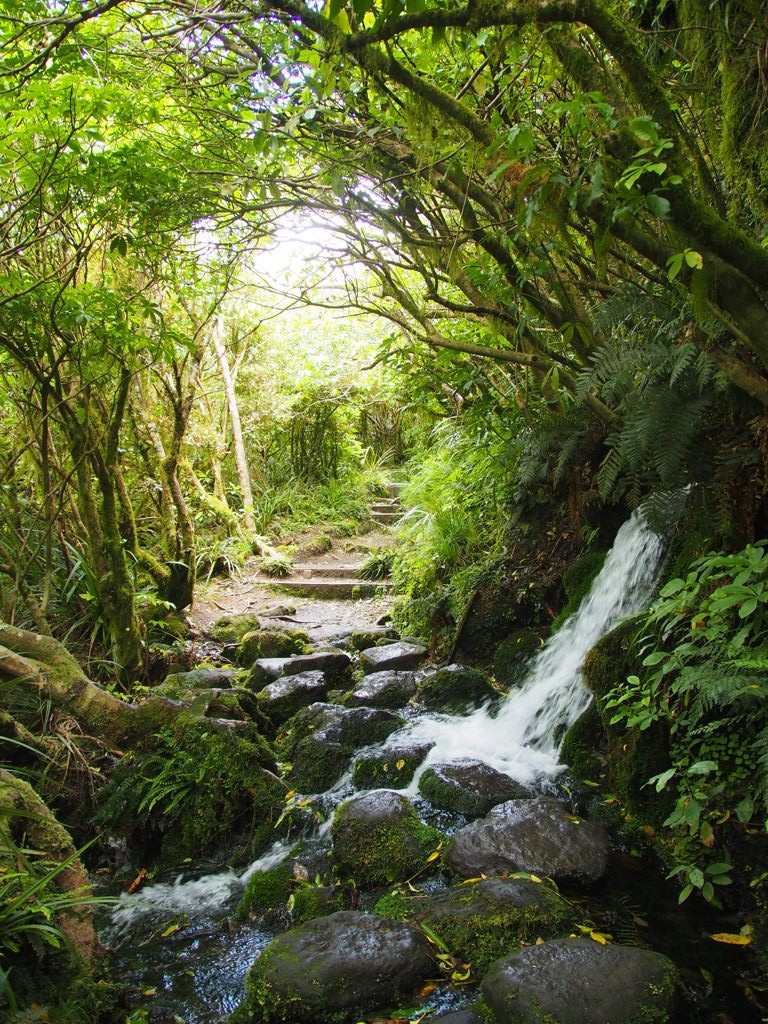 Le Parc National d’Egmont est l’un des parcs néo-zélandais les plus faciles d’accès, quelle que soit votre condition physique. C’est un parc très verdoyant, couvert d’une forêt humide (il faut dire que la région est particulièrement pluvieuse apparemment – même si pour une fois on a eu de la chance avec la météo).