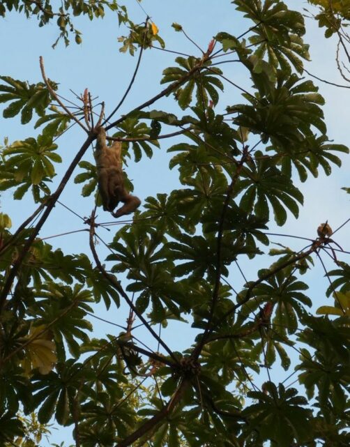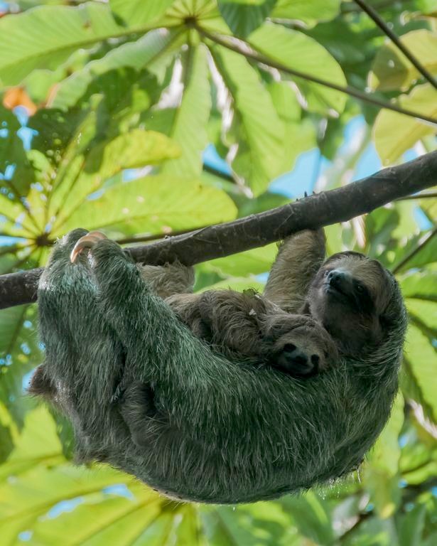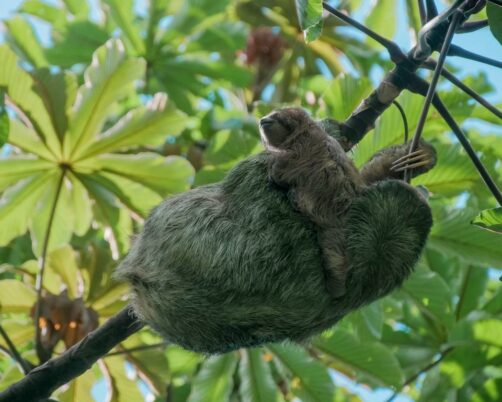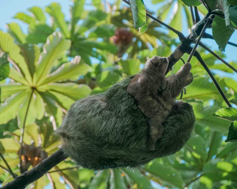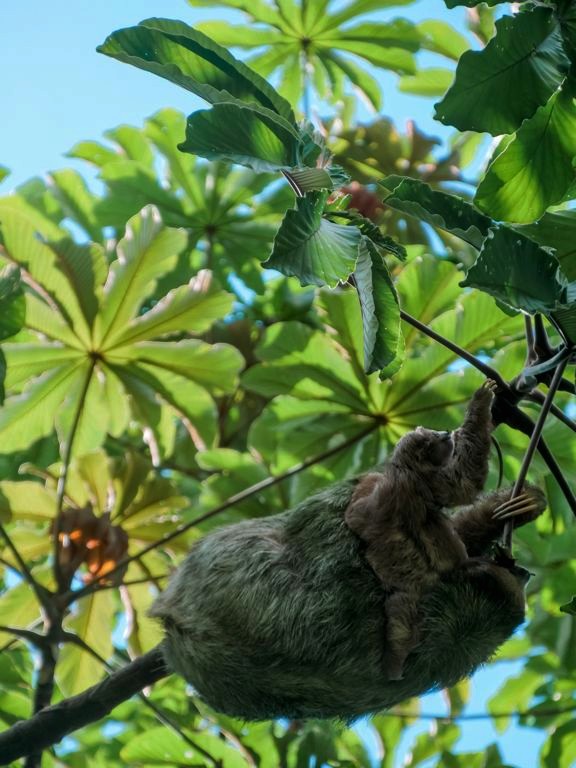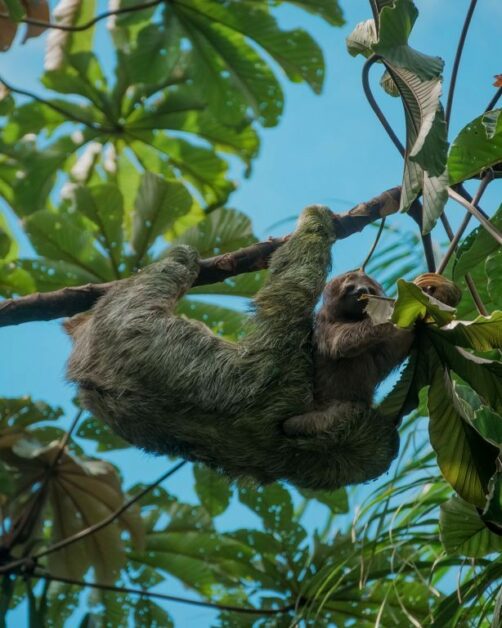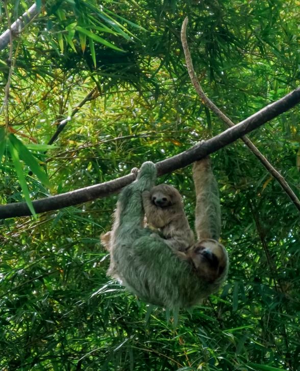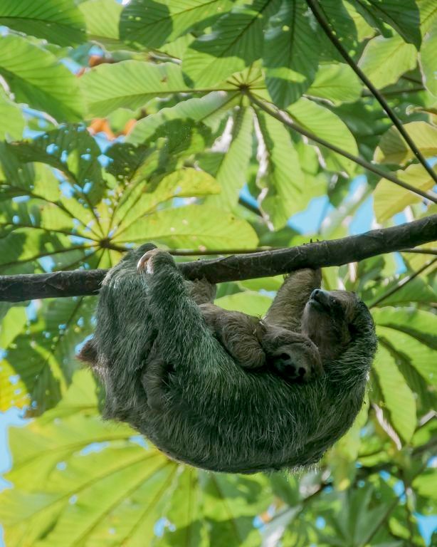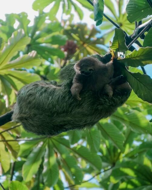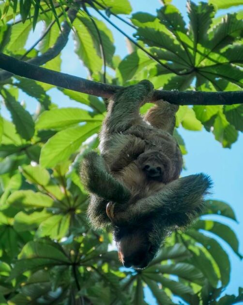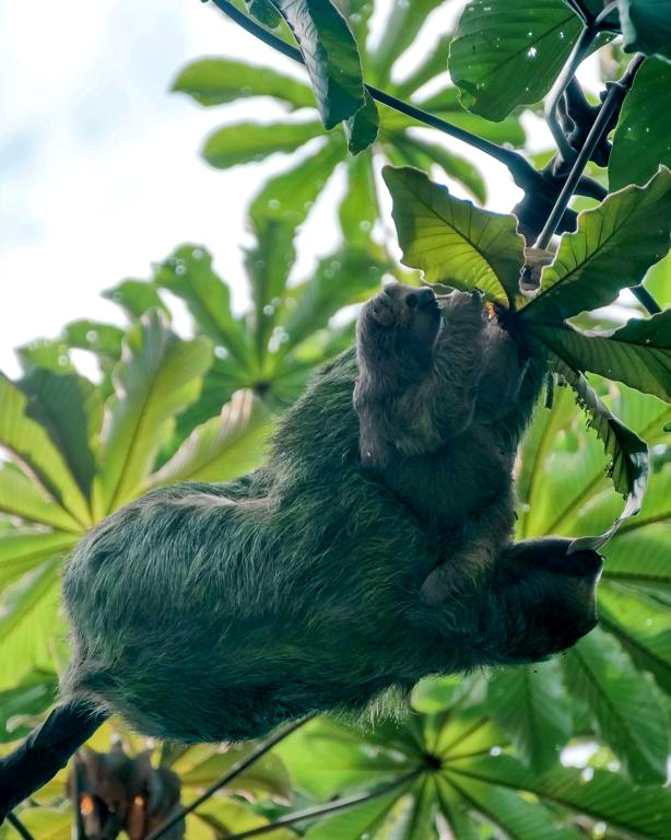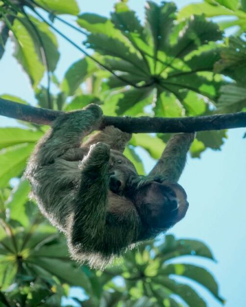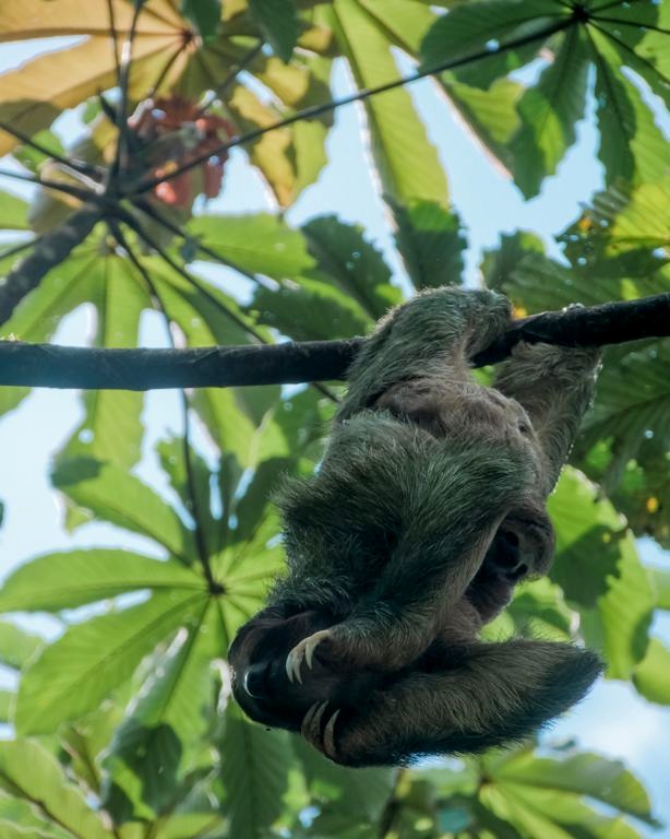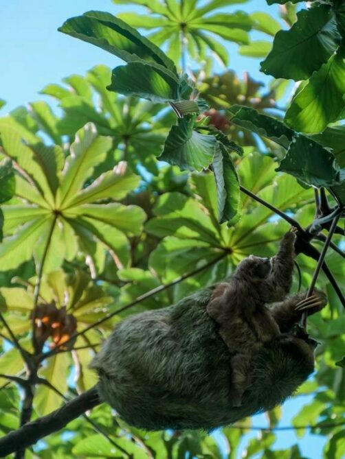Il y a plusieurs paresseux sur le domaine et ils sont vraiment assez faciles à voir ici. Comme ils ne bougent pas souvent, le personnel les repère assez vite et peut ensuite vous guider vers eux ! C’est clairement sur le domaine du Nayara Resort qu’on a pu le mieux observer des paresseux de tout notre voyage au Costa Rica ! Notamment car il y a plusieurs chemins surélevés, qui facilitent l’observation lorsqu’ils sont (comme souvent) tout en haut des arbres. J’ai rarement vu tant de mignonitude qu’en observant pendant plus d’une heure une maman paresseux et son petit. Un mot : magique !