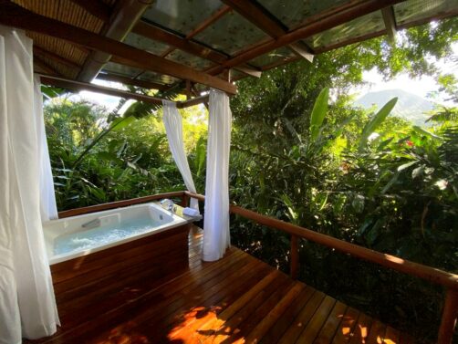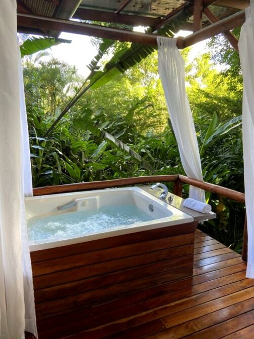 - Nayara Springs : ici, place aux « Spring Villas » équipées de « plunge pools », des petites piscines privées (au lieu d’un jacuzzi dans les villas du Nayara Gardens), alimentées par des sources chaudes naturelles.