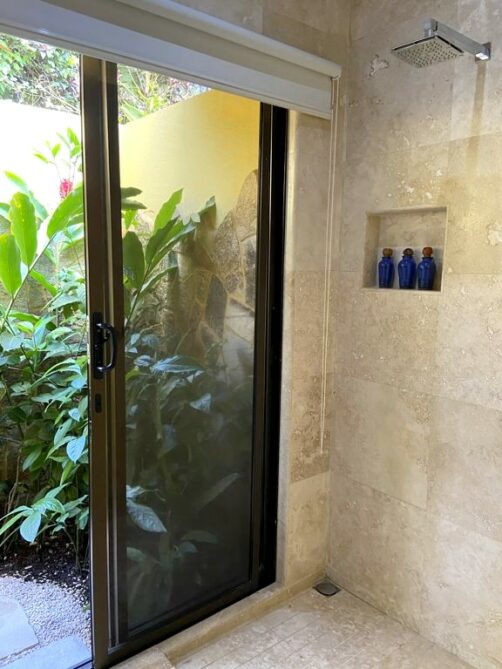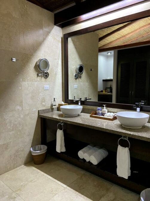 - Nayara Gardens : on y trouve des Casitas Deluxe, avec douche et jacuzzi extérieurs. Ils appellent ça leurs chambres « entry-level » mais c’est déjà le grand luxe avec près de 80 mètres carré ! C’est aussi la seule partie du resort qui est « kids friendly », les deux autres étant « adults only ». C’est dans cette partie que nous avons séjourné.