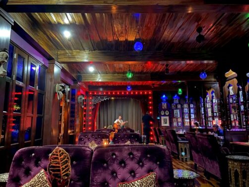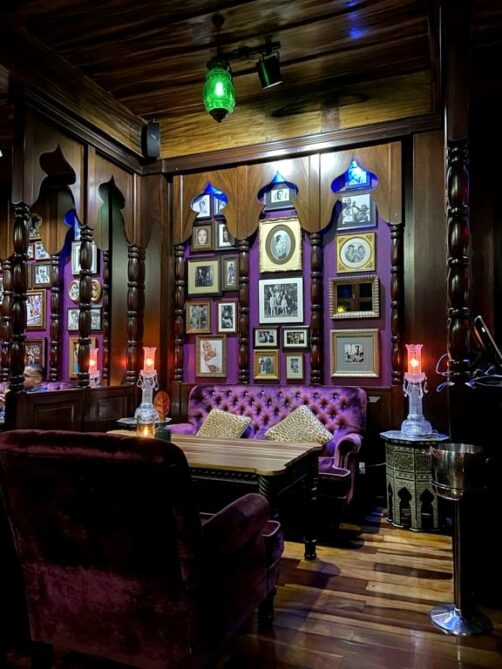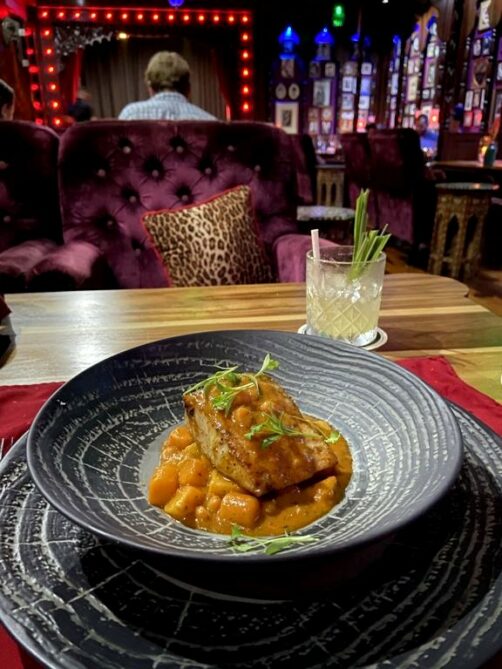 En journée, avec sa terrasse au calme donnant sur une petit piscine réservée aux adultes, l’endroit est déjà plutôt sympa. Mais je vous recommande surtout de réserver (indispensable !) pour le soir, quand le resto prend des airs de speakeasy, avec son intérieur boudoir tamisé, sa jolie carte de cocktails et la musique live.