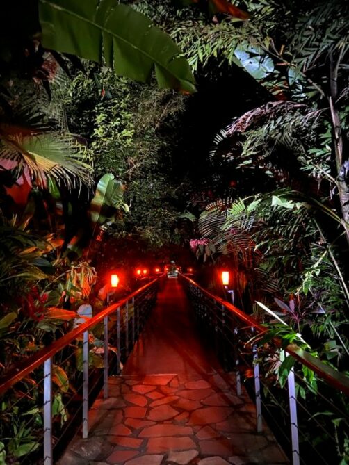 Mais la meilleure partie du resort, ce sont les thermes (hot springs) situés dans la partie Tented Camp, la dernière extension du resort. Il s’agit de six piscines d’eau thermales, réparties dans la jungle. Quand les lumières s’allument le soir, c’est encore plus magique. Il n’y a vraiment pas de mot pour décrire cet endroit.