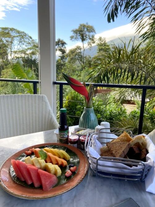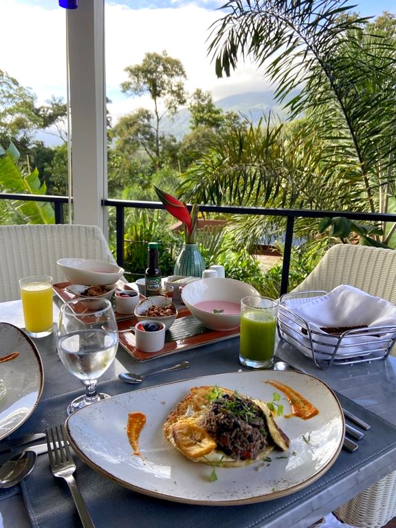 En ce qui concerne le petit-déjeuner, on pouvait également choisir où le prendre. On a choisi la terrasse du Mis Amores, le bistrot latino situé près de la piscine principale du Nayara Springs, pour sa vue sur le volcan… Et on a pas été déçus non plus ! Fruits ultra frais, gallo pinto préparé à la commande… Impeccable !