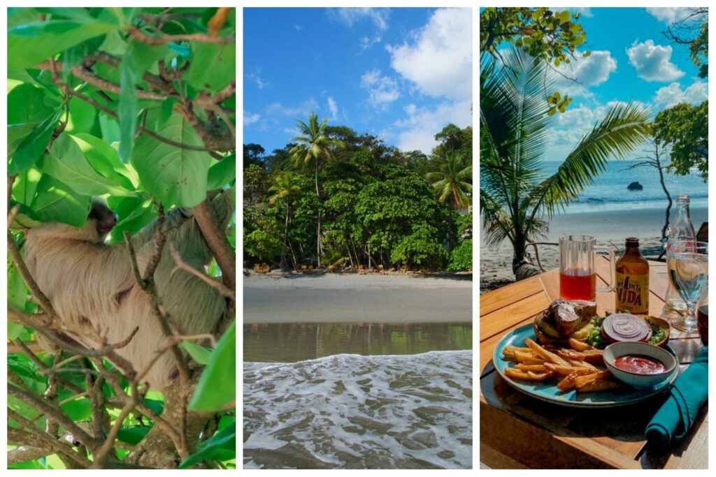Nous avons eu un énorme coup de cœur pour cet endroit idyllique, ainsi que pour leur restaurant situé sur la petite plage, où on peut manger les pieds dans le sable, avec une vue imprenable et entouré par les animaux : iguanes, singes et même paresseux à deux doigts (le plus rare)… Cet endroit, pour moi, c’est tout ce que le Costa Rica fait de mieux !