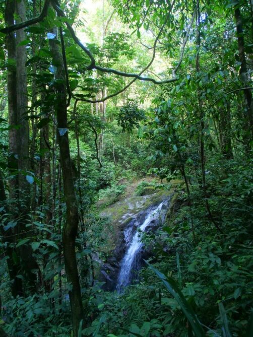 Après avoir analysé le plan des sentiers sur Maps.me (ultra complet au Costa Rica), nous avons décidé de commencer notre visite par les sentiers intérieurs et de revenir ensuite par les plages (pour faire les montées et descentes avant qu’il ne fasse trop chaud). Nous avons donc commencé par prendre le premier embranchement vers la droite, un petit aller-retour qui mène à une petite chute d’eau. Il y a apparemment pas mal de chance d’y voir des animaux mais nous n’avons pas eu de chance cette fois-ci.