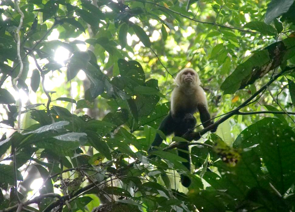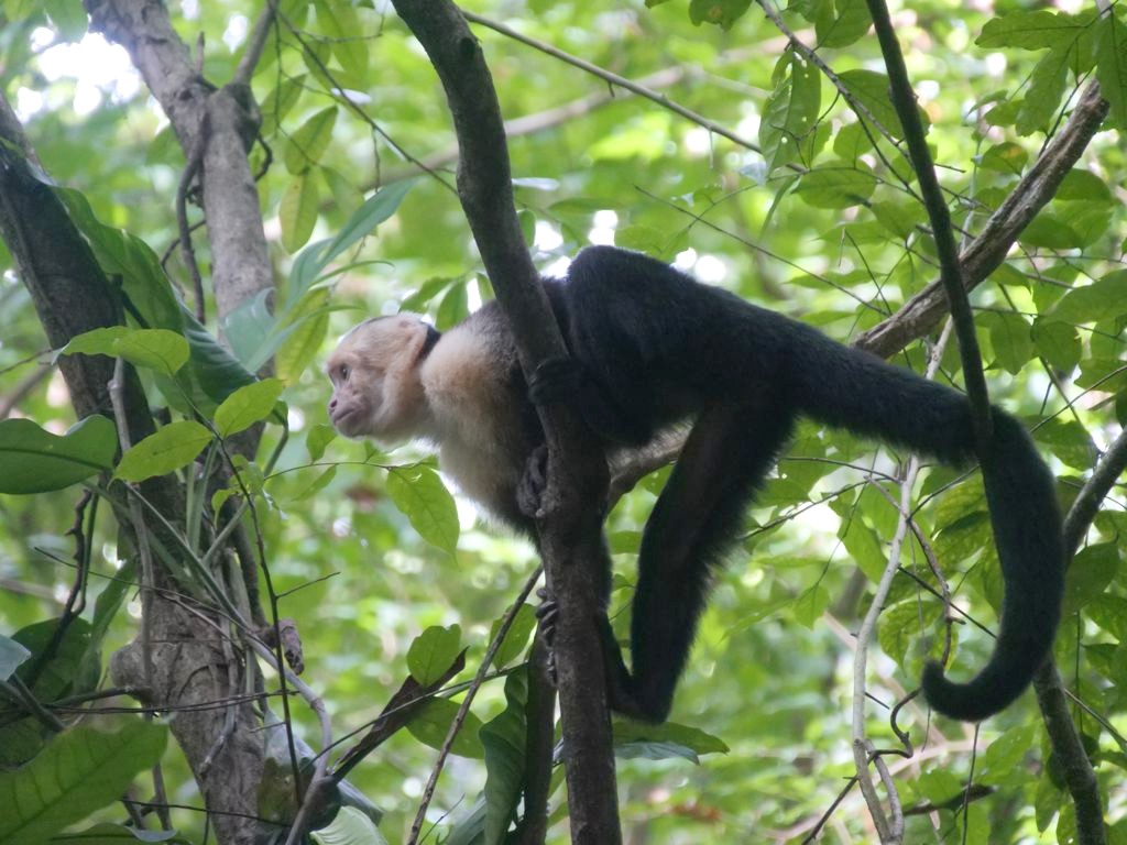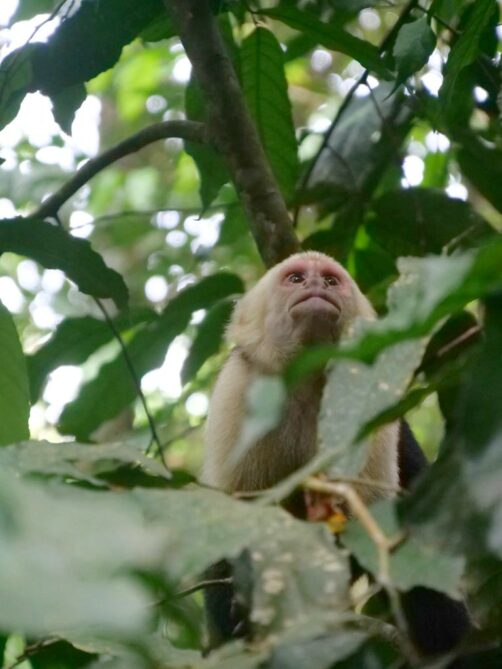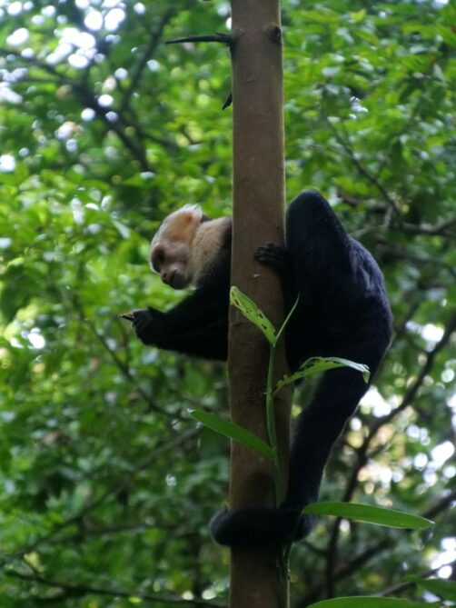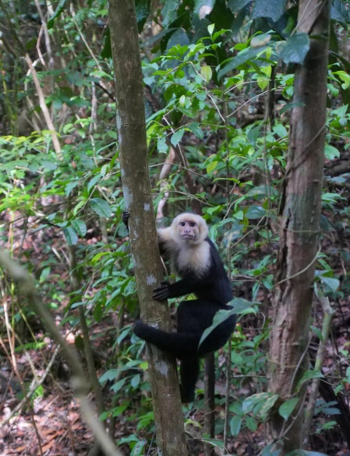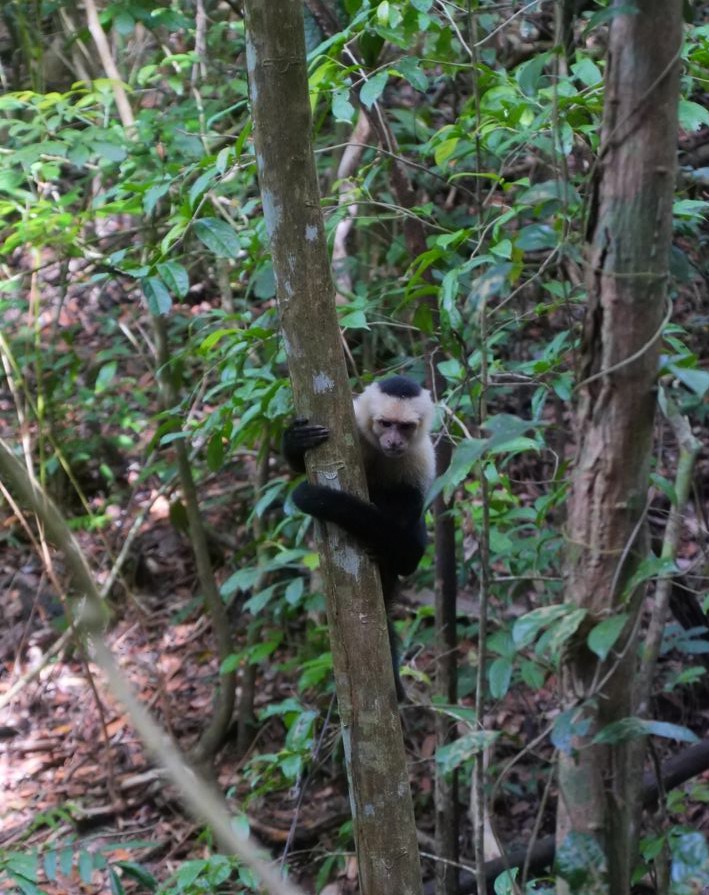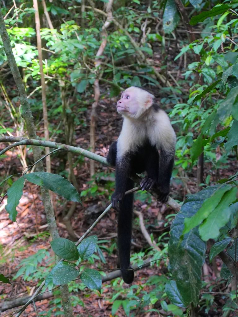 Après avoir aperçu un petit paresseux haut perché à l’embranchement des sentiers (en général visible par l’amas de touristes au pied de l’arbre), nous avons continué avec la montée jusqu’au bout de la Miradores Trail. Du sommet, on peut entrapercevoir la plage de Puerto Escondido. Mais c’est surtout pour les animaux que cette piste est intéressante. On y a notamment vu un agouti de très près, et encore plein de singes qui nous ont fait tout un show !