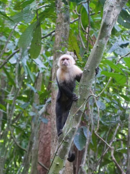 Nous avons ensuite repris le sentier principal jusqu’au shop-bar du parc. Sur la Perezoro Trail, nous avons notamment vu pas mal de singes ! On a réussi à voir assez facilement les trois espèces de singe principales que l’on trouve dans ce parc : le singe écureuil, le capucin à face blanche et le singe hurleur (le plus rare). J’adore observer les singes et se retrouver entourés par un groupe de singes, comme on l’a été plusieurs fois dans ce parc, est toujours un moment unique.
