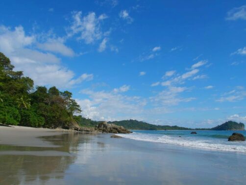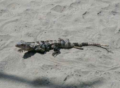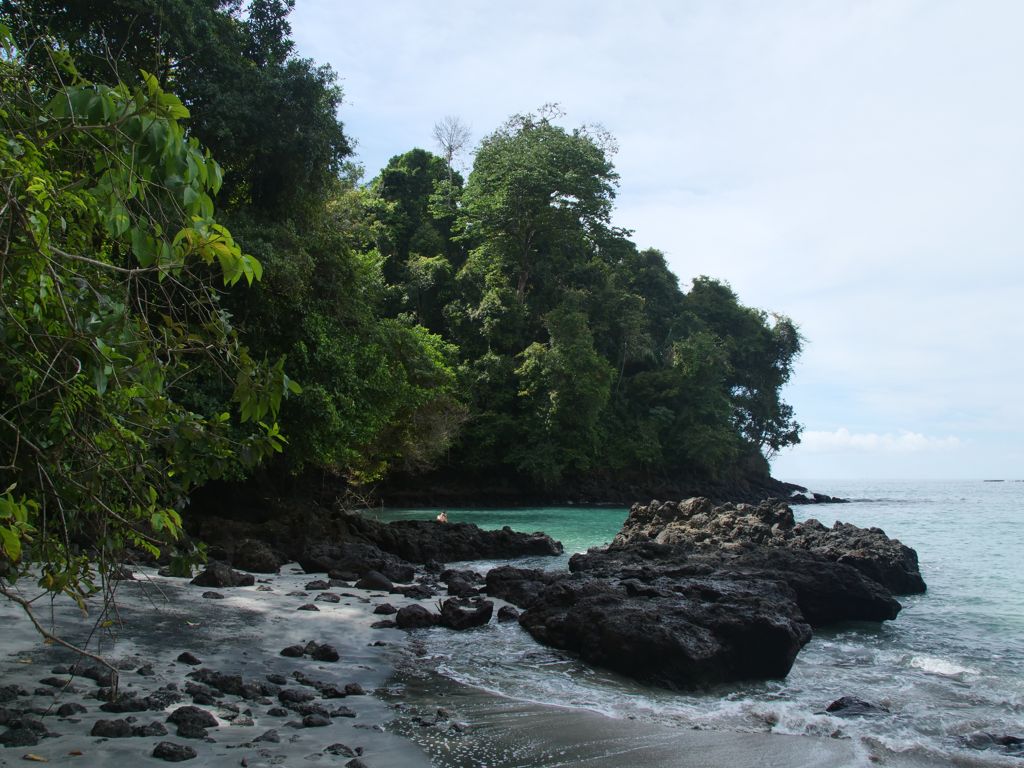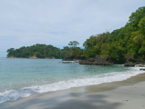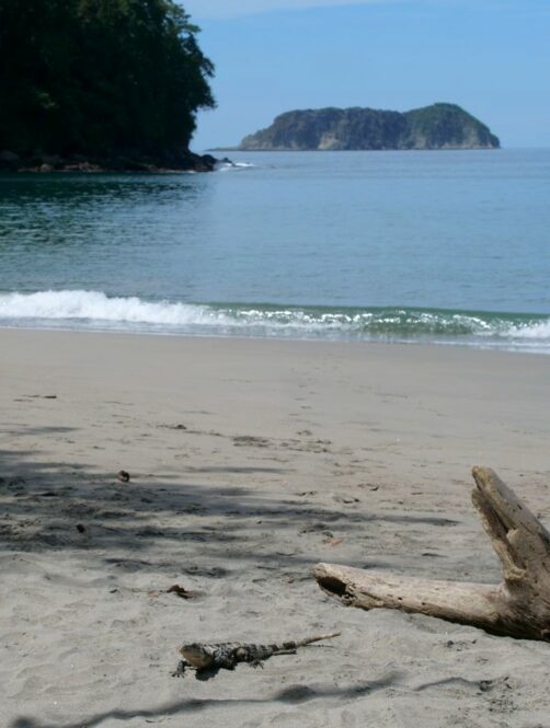 De l’autre côté de la péninsule, nous sommes étonnés de trouver l’autre plage, la Playa Espadilla Sur, pourtant encore plus grande, entièrement vide (mis à part quelques iguanes). Il y aurait apparemment plus de courant de ce côté, ce qui explique l’attroupement de touristes sur l’autre plage, entourés de singes et agoutis ramassant les déchets des humains…