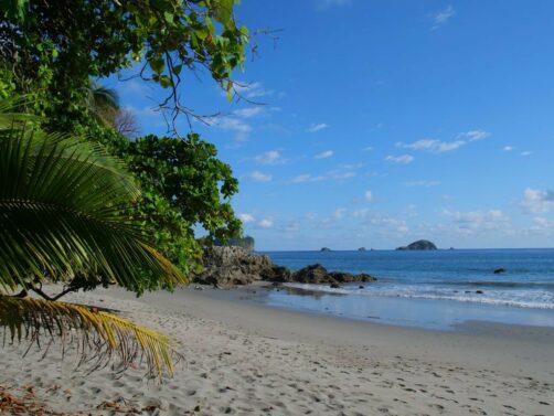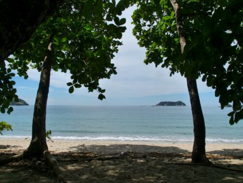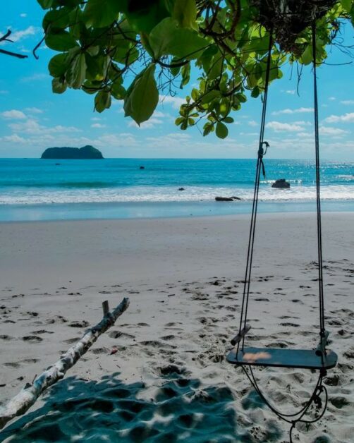 Et si je vous disais qu’au lieu de vous entasser sur la plage de Manuel Antonio (à l’intérieur du parc) ou la Playa Espadilla (la plage publique à l’extérieur du parc), vous pouviez profiter quasiment seuls d’une petite plage de carte postale, avec palmiers et balançoires ? Il s’agit de la Playa Playitas, séparée de la Playa Espadilla par de gros rochers.