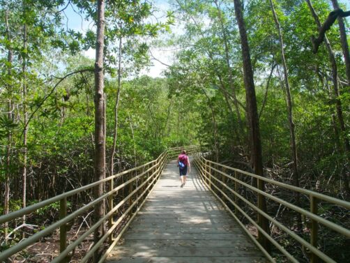 À la fin de la plage, une petite passerelle traversant la mangrove nous permet de rejoindre notre point de départ. Il nous aura fallu à peu près 4 heures pour effectuer la balade, en s’arrêtant pour des photos et pour observer les animaux, mais sans se baigner. Sachez cependant qu’il y a des douches pour se changer et se laver près de la plage. Mais si vous ne devez faire qu’une baignade, attendez le bon plan que je partage avec vous juste après…