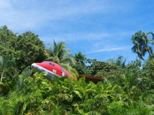 Nous avons donc séjourné à l’Hotel Costa Verde, un hôtel situé un peu dans les hauteurs, avec de jolies vues sur le parc de Manuel Antonio, notamment depuis l’une de ses piscines (d’où on peut aussi apercevoir un des plus beaux couchers du soleil). Mais pas dans n’importe quelle chambre puisque la particularité de cet hôtel est de proposer quelques chambres très particulières, installées dans d’anciens avions qui semblent s’être écrasés au beau milieu de la jungle !
