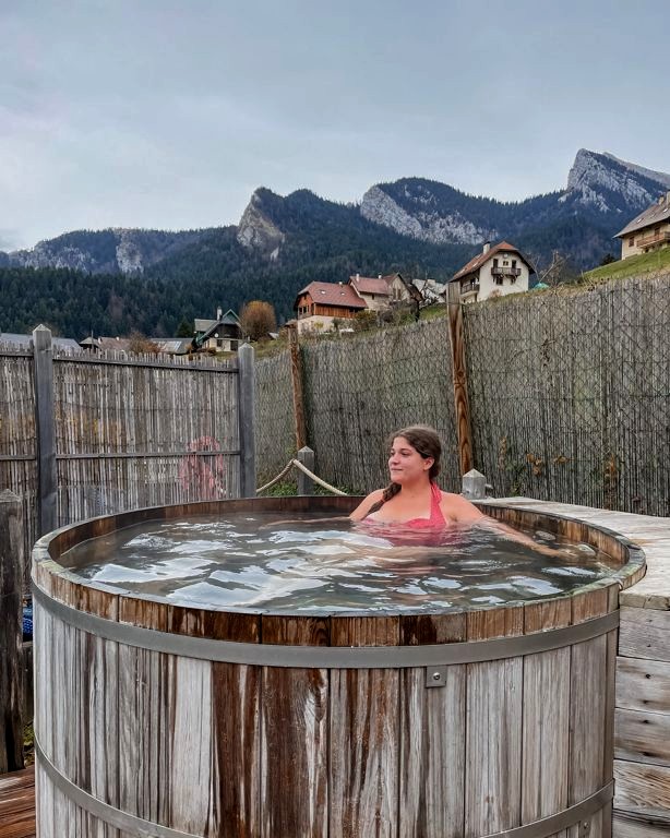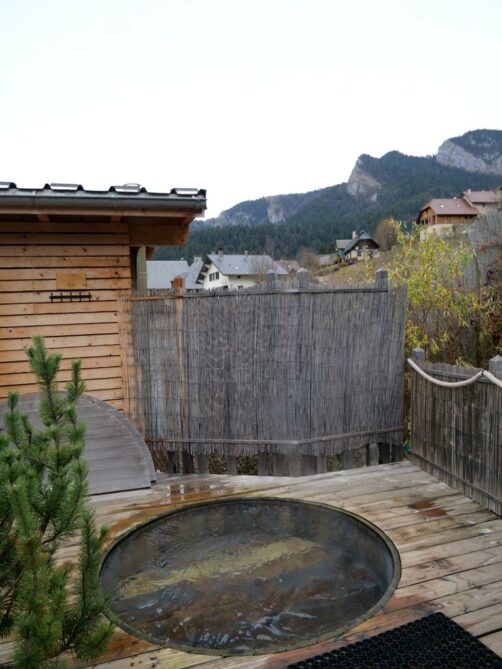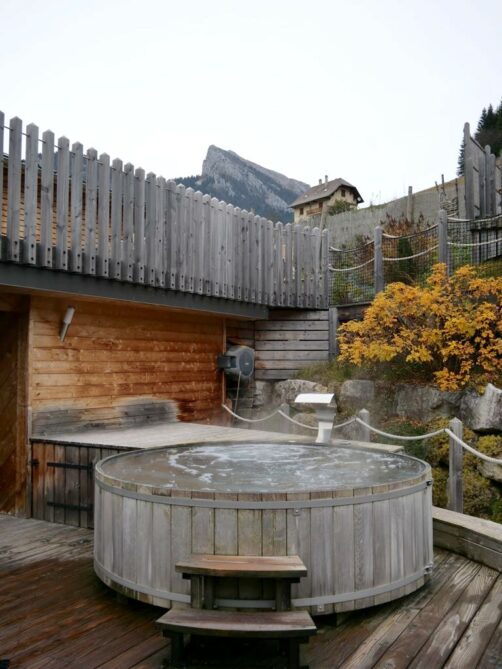 Les bains extérieurs tout en bois, avec vue sur les montagnes, m’ont un peu rappelé les onsen du Japon, c’est dire ! Bien espacés, les différents bains se trouvent à différentes températures. Des baignades à alterner avec un sauna ou un passage dans la yourte de relaxation.
