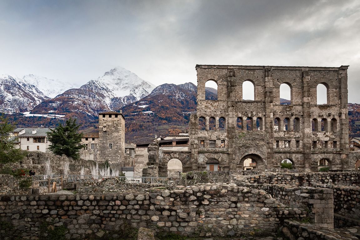 Située au nord ouest de l’Italie, à quelques kilomètres des frontières françaises et suisse, la ville d’Aoste et son patrimoine culturel très riche ravira les férus d’histoire. En effet, de part sa position stratégique au pied des plus hauts sommets des Alpes, Aoste et sa vallée ont joués un rôle déterminant dans l’histoire de l’Italie. Aujourd’hui, de nombreux vestiges archéologiques sont visibles à Aoste à l’instar de son impressionnant théâtre romain, de son cryptoportique et de la collégiale de Saint Ours que l’on peut citer parmi les sites les plus remarquables.