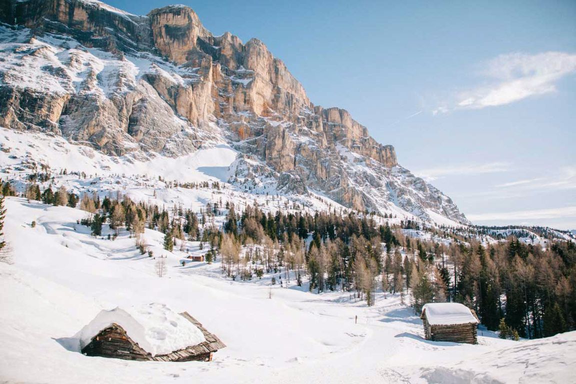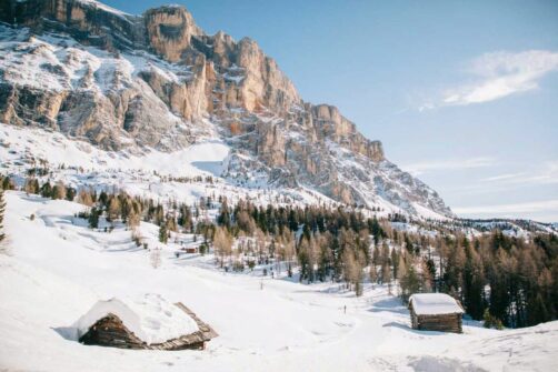 En empruntant la route qui mène au Passo Valparola, vous serez de suite immergé dans la beauté des paysages hivernaux de l’Italie. Je vous conseille fortement de faire la randonnée raquette de La Crusc à Armentara, qui vous mènera à une petite église perchée avant de vous faire traverser les magnifiques alpages enneigés. Corvara est LA station de ski d’Alta Badia, ici vous dévalerez les pistes jusqu’au petit restaurant familial de Berghotel Ladinia.