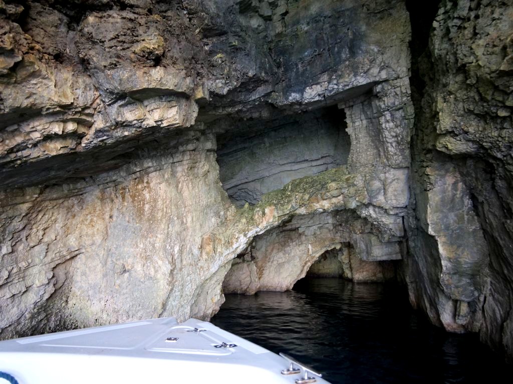 Les Blue Caves sont un ensemble de grottes, accessibles uniquement en bateau pour la plupart, qui doivent leur nom à la couleur bleue intense que prend l’eau à l’intérieur de celles-ci, à cause des reflets du soleil et de certaines algues. Le bateau essaie de se faufiler le plus loin possible dans certaines caves, il vaut donc mieux faire ça dans un petit bateau (et on comprend mieux pourquoi il faut que la mer soit vraiment calme, déjà comme ça notre super skipper a eu un peu du mal !).