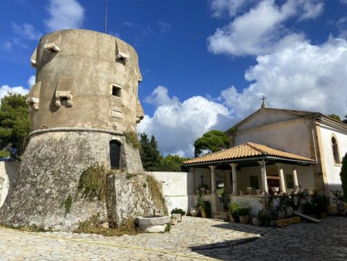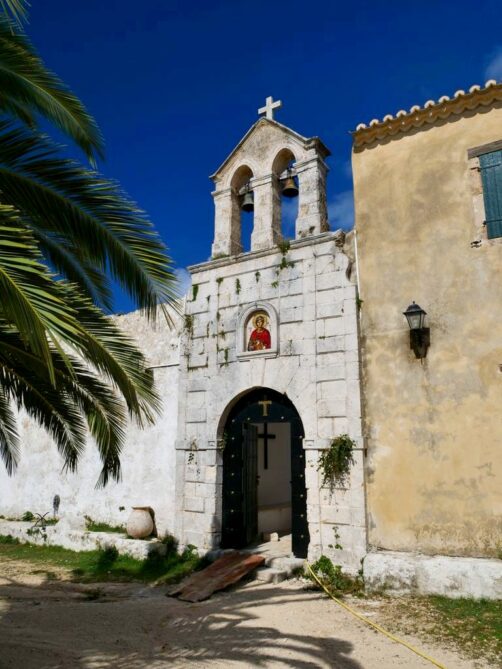 Après un petit passage dans le village de Volimes à l’intérieur des terres (la route vers celui-ci était splendide !) nous nous arrêtons à l’un des petits monastères de l’île, le Monastère St George Kremnon, un endroit très paisible.