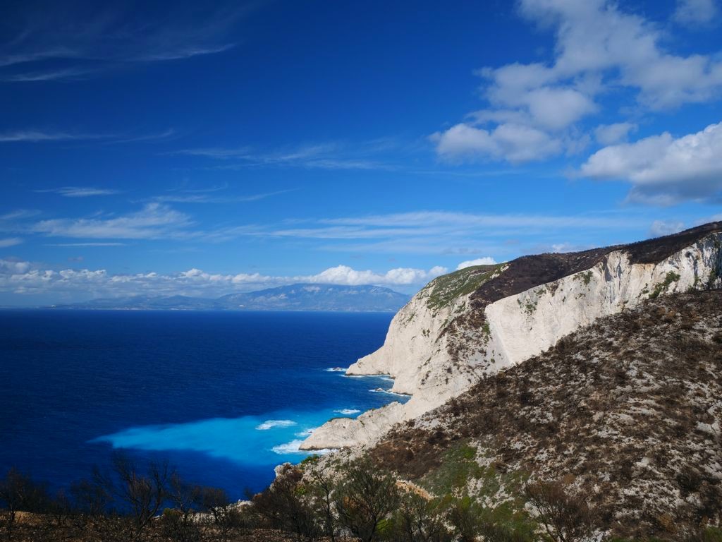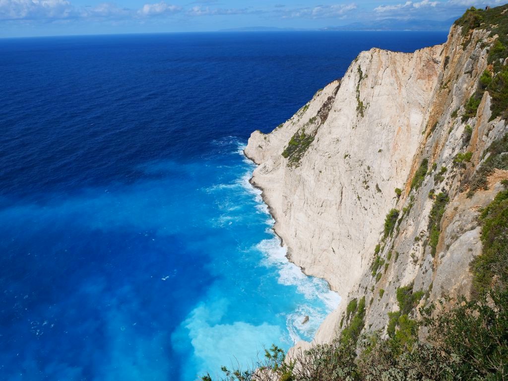 Nous prenons ensuite la direction de l’une des vues les plus connues de Grèce : le point de vue sur la Plage du Naufrage (Shipwreck Beach) depuis le sommet des falaises.